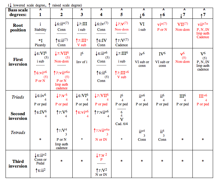 This will be the last chapter with the harmonic charts. Areas with an * indicate possible sonorities that will be dealt with as found in future analysis exercises.