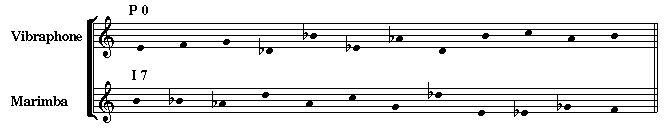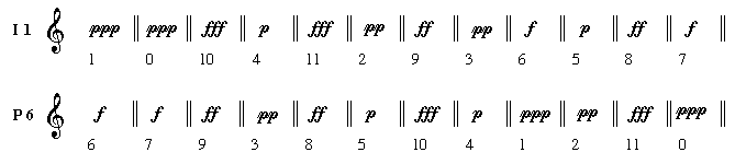 | Pitch | P 0 = 0 1 3 9 2 11 4 10 7 8 5 6 | I 7 = 7 6 4 10 5 8 3 9 0 11 2 1 |