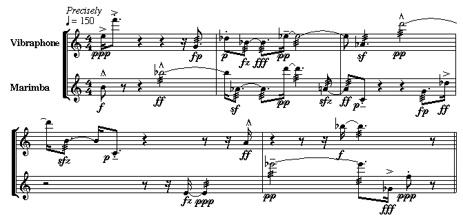 This sample project for Total Serialism is not intended to be a complete set of directions on how to do the assignment. Its purpose is to provide some information on how to approach the task. The sample project given is not necessarily complete, and there are many ways to arrive at the end product. Do not use any of the choices found below.