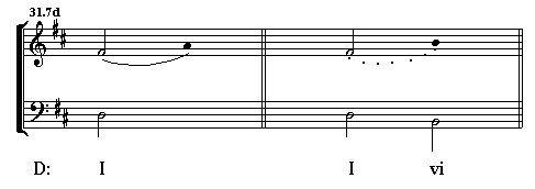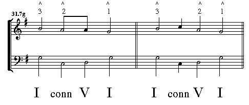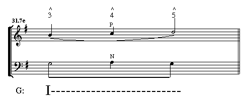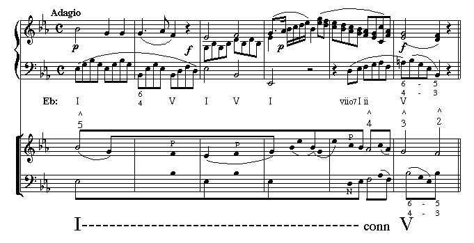 Some connections are part of the background motion, and are shown with half-notes as part of the descending stepwise motion in the soprano. However, some connections cannot be placed in a descending stepwise motion; these will be represented as important middleground events.