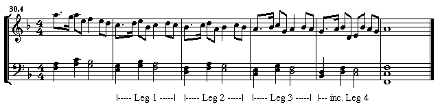 A sequence is defined as a pattern that repeats exactly (or almost exactly) several times, always at a different pitch level. These pitch levels must move in one direction only, and at a constant interval. Each unit of this repeated pattern is called a LEG, and there must be a minimum of three legs to create a sequence. The final leg does not need to be complete melodically, but it must complete the prior harmonic pattern.
