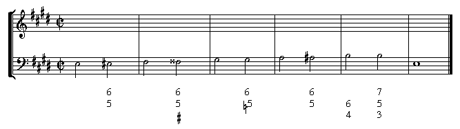 Add soprano, alto, and tenor lines to this figured bass, then provide a Roman numeral and structural analysis: